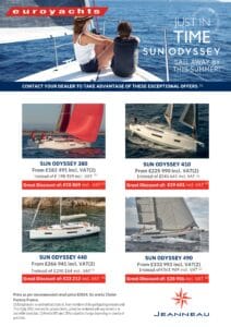Enjoy exclusive ‘Just in Time’ savings on selected Sun Odyssey models with an 8% discount on the hull price: