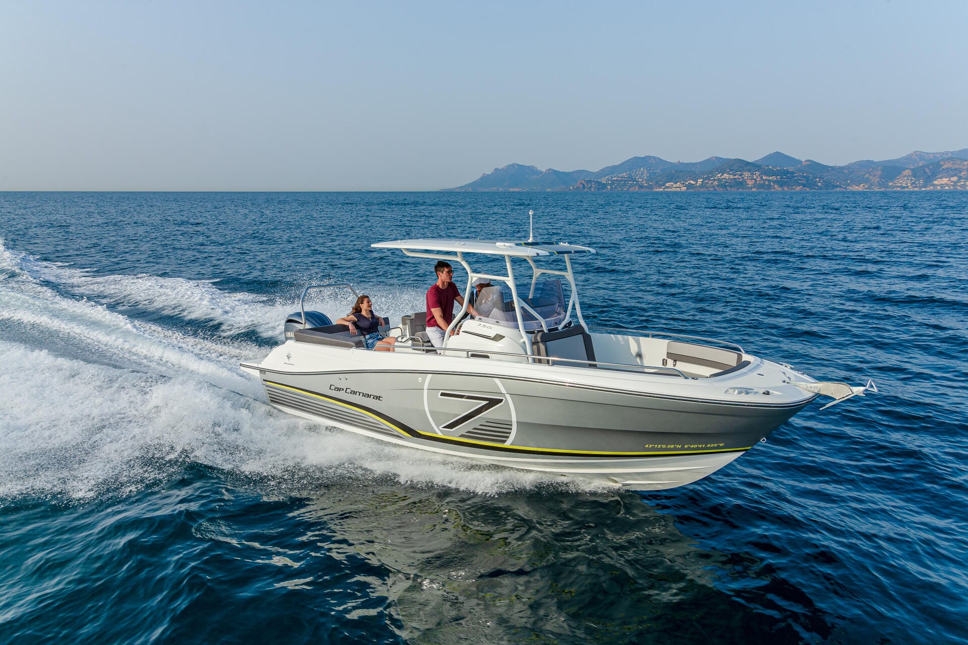 Her entirely redesigned hull is dynamic and powerful. Equipped with 200 HP, the CAP CAMARAT 6.5 CENTER CONSOLE SERIE3 cleverly balances ease of handling, design and comfort on board.