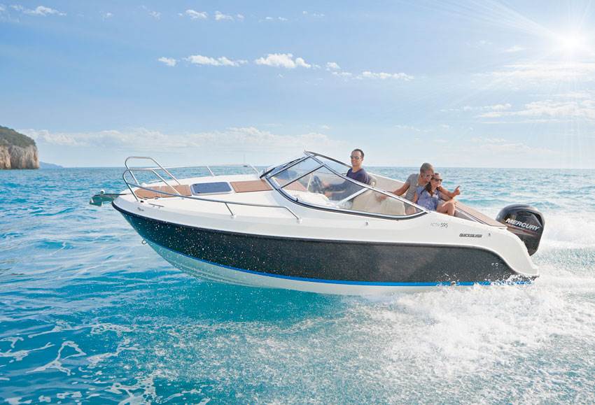 Safety is never an afterthought with Quicksilver. The Activ 595 Cruiser has the features a discerning boater expects as standard, from its solid build quality down to hydraulic steering and sport steering wheel and engine pre- rigging for speedy, safe and smooth navigation. Good cockpit depth provides a feeling of security on board whilst stepped access to the stern gives safe and easy access to the water.