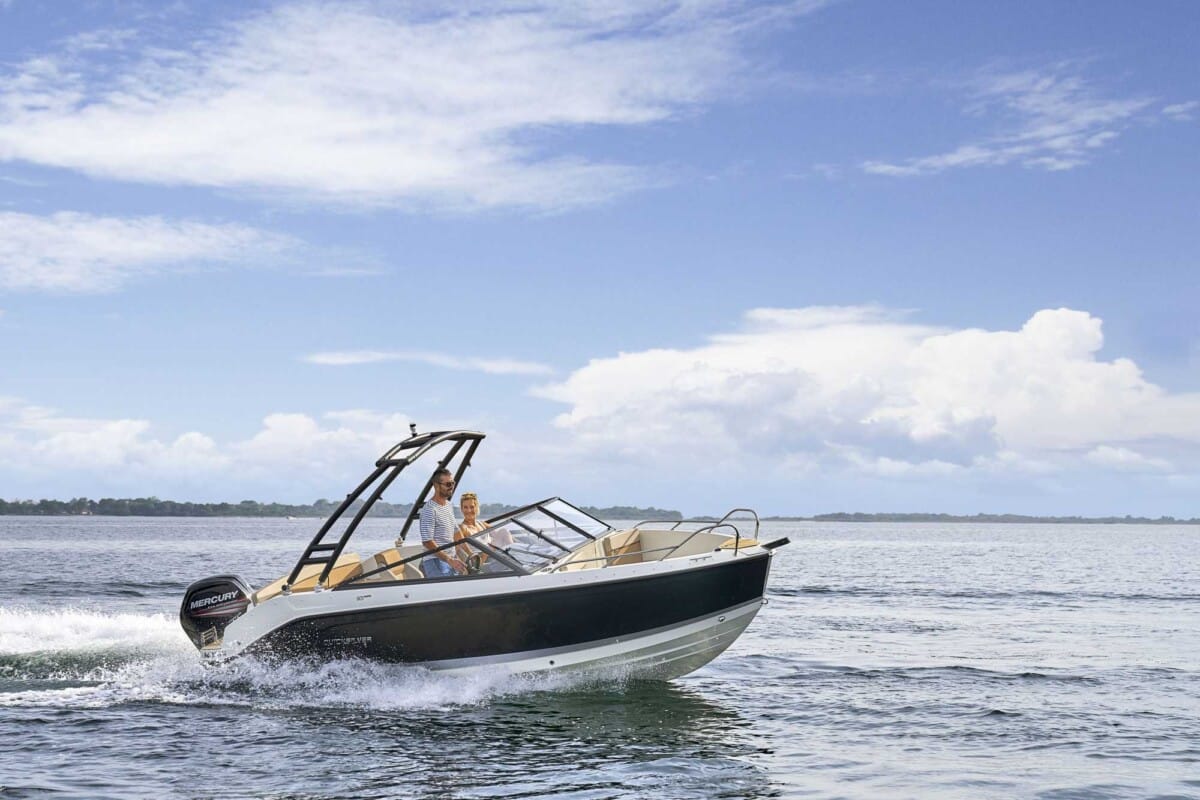 The 605 Bowrider holds space for 6 people. Is your crew all about soaking up the sun? Turn both bow and cockpit into spacious sun lounges. The new sun lounge system in the bow is easier to set up and doesn’t involve any loose parts. Do you prefer action and speed? Then go for the optional ski tow arch or the wakeboard tower. With a Mercury engine of up to 150 hp, you are sure to add some thrills to your day.