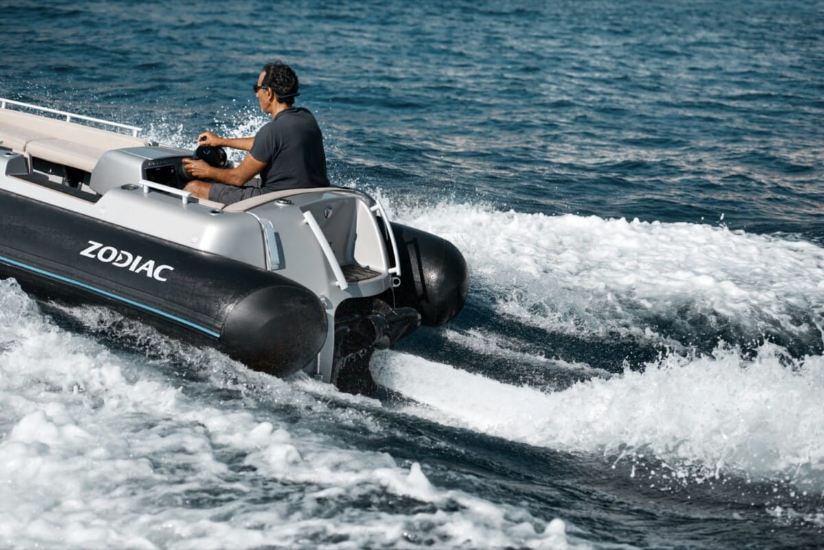 With the development of eJet 450, Zodiac Nautic is doubling down on its commitment to keep exploring the future of the boating industry. Together with the world leader in marine electric propulsion, Torqeedo, which produces the electric engine Deep Blue 50kW and with the latest generation of automotive battery (BMW) 40kWh, eJet 450 gets 90 min of range at 24 knots (8 hours at 5 knots). It achieves a max speed of 30 knots thanks to the revolutionary HydroJet technology. eJet has a high quality Neoprene tube, exceptional retractable seating, and upholstery by Serge Ferrari, with a quilted finish sewn in France by hand.